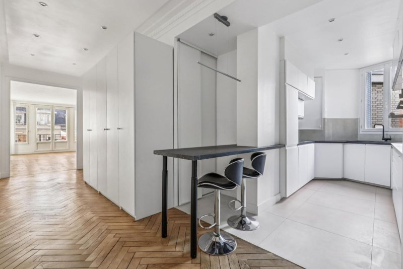 EXCLUSIVITE - Paris 75017 - Ternes/Porte Maillot : Situé dans un immeuble Art-Déco récemment ravalé, cet appartement traversant et très lumineux de 110 m², au 7ème étage avec ascenseur, offre un beau cadre de vie.