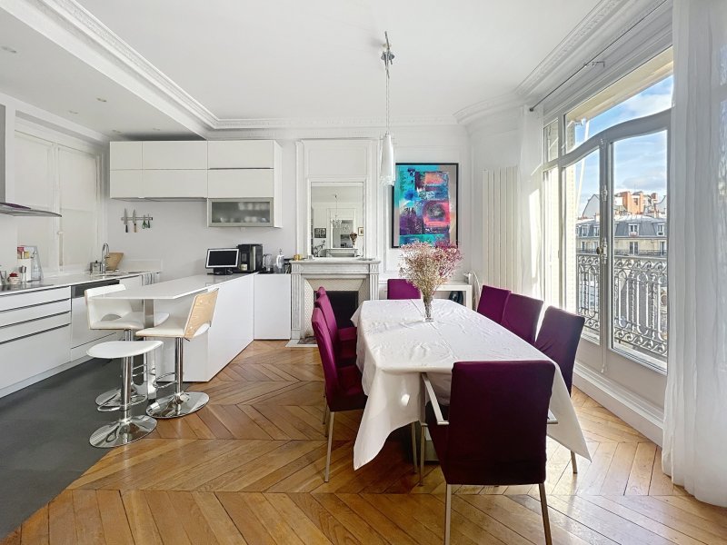 Dans très beil immeuble Pierre de Taille, au 5ème étage avec ascenseur, beau duplex de 145,40 m2 loi Carrez comprenant entrée, double réception de 42 m2 sur balcon filant plein Sud, cuisine ouverte équipée, 4 chambres, 2 salle d'eau, salle d ebains et 2 WC. Belle vue dégagée, plein soleil. Une cave en sous-sol.