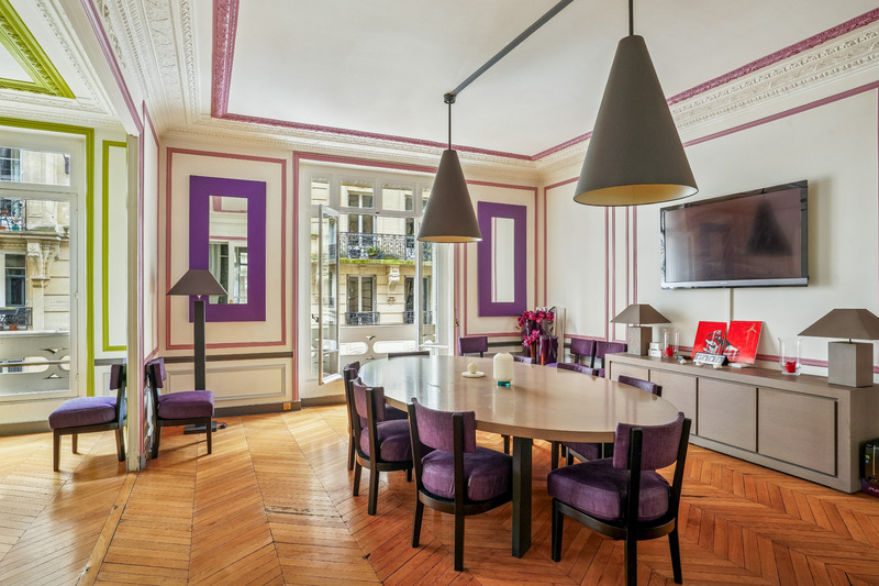 Occupant un étage entier, ce bien se distingue par une entrée majestueuse ouvrant sur de magnifiques espaces de réception, comprenant deux salons et une salle à manger. Les volumes remarquables, sublimés par une hauteur sous plafond de 3,18 m, mettent en valeur le charme de l'ancien soigneusement préservé : parquets d'époque, élégantes moulures et cheminées.