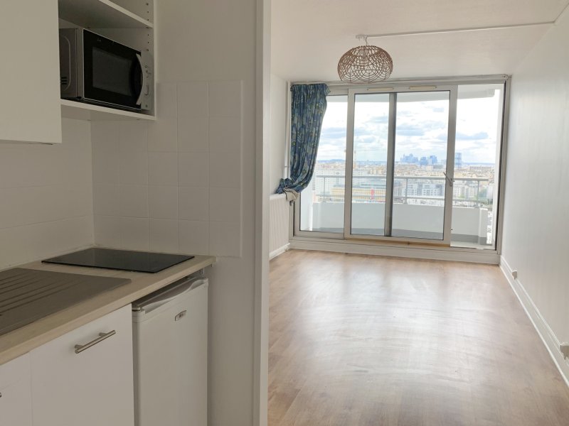 RARE, VUE EXCEPTIONNELLE SACRE COEUR ET MONUMENTS PARISIENS; SPACIEUX STUDIO TRES ENSOLEILLE AVEC BALCON TERRASSE. Proche métro Marx Dormoy, Marché de l'olive, ce studio de 26,10 m2 environ exposé ouest est situé au 18ème étage avec 2 ascenseurs d'un bel immeiuble des année 1974. Vous profiterez de couchers de soleil magiques dans cet appartement composé d'une entrée avec placards, d'une pièce principale ouvrant sur un large balcon, avec un coin cuisine aménagée (plaques et réfrigérateur), et d'une salle de bains avec wc. Parfait état, ravalement façade et toiture récents. Cave et parking au sous sol. Chauffage et eau chaude COLLECTIFS, immeuble très sécurisé avec service sécurité 24/24. Immeuble soumis au statut de copropriété contenant 512 lots. Quotte part charges prévisionnelles annuelles : 2700 euros. Prix de vente : 220 500 EUR honoraires d'agence 5% inclus à la charge de l(acquéreur (prix net vendeur : 210 000 EUR)