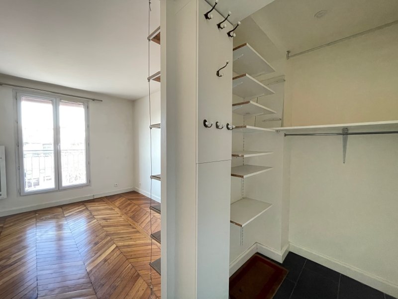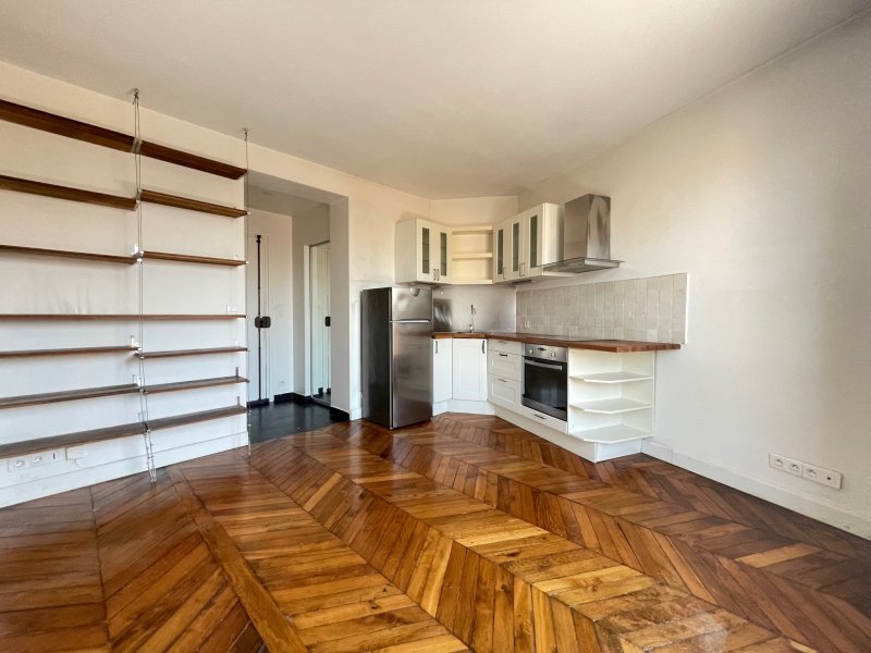 Quartier Porte de Saint-Ouen / Guy Môquet. Au pied du métro Porte de Saint-Ouen et à proximité immédiate des commerces de Guy Môquet. Ce charmant 2 pièces de 30,76 m2 bénéficie d'un emplacment recherché et pratique au quotidien. Au sein d'une jolie copropriété avec gardienne. L'appartement se trouve en étage élevé et offre un très bel ensoleillement et une belle luminosité grâce à son exposition Ouest et sa vu dégagée. Vous serez séduit par son beau parquet d'origine en pointe de Hongrie, sa bonne distribution sans aucune perte de place et son balcon. Cet appartement se compose d'une entrée avec un grand dressing, un séjour lumineux ouvrant sur son balcon filant, une cuisine américaine équipée, une chambre donnant également sur le balcon filant et une salle d'eau avec wc et nombreux rangements. Une cave au sous-sol complète ce bien.