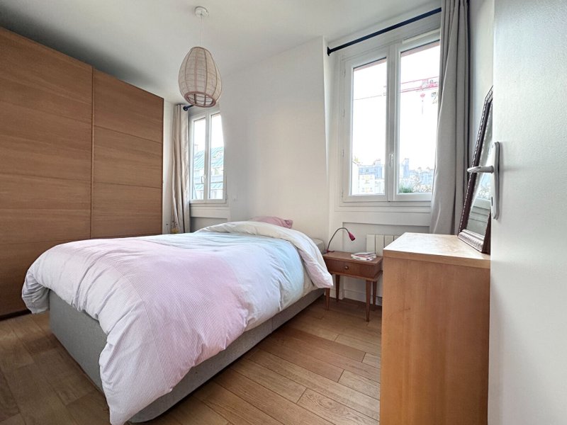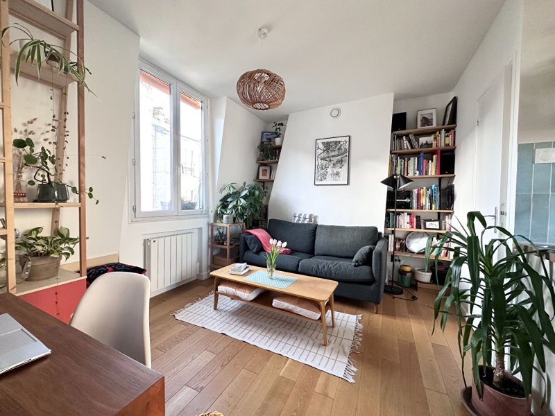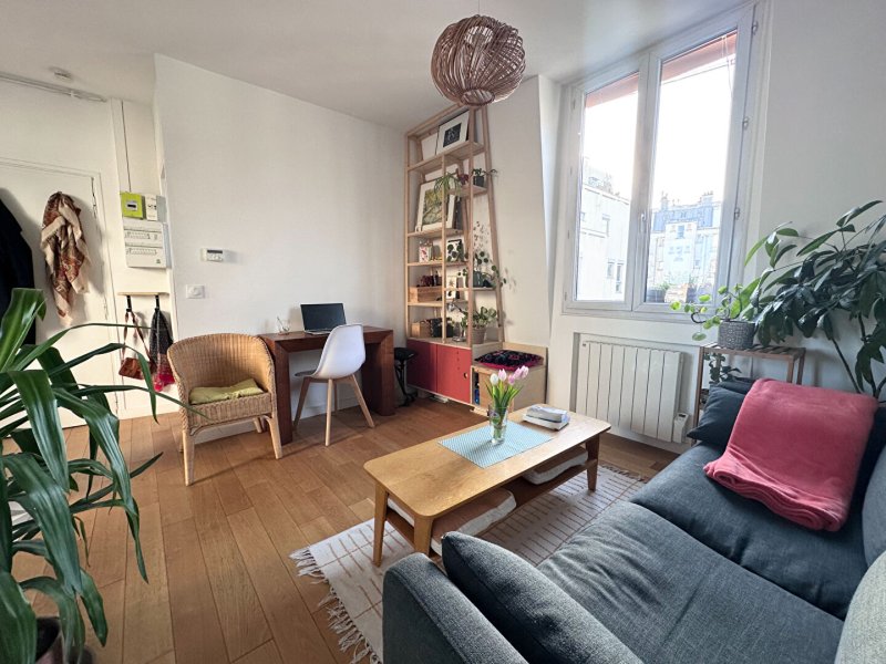 Paris 18eme métro Chateau-Rouge - rue d'Oran - au 4eme et dernier étage sans ascenseur, découvrez ce superbe 2 pièces de 30,45 m² loi carrez et 32,51 m2 au sol, lumineux et plein de charme.