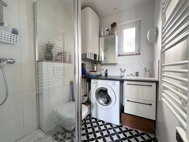 L'appartement se compose également d'une chambre, ainsi que d'une salle d'eau avec WC.