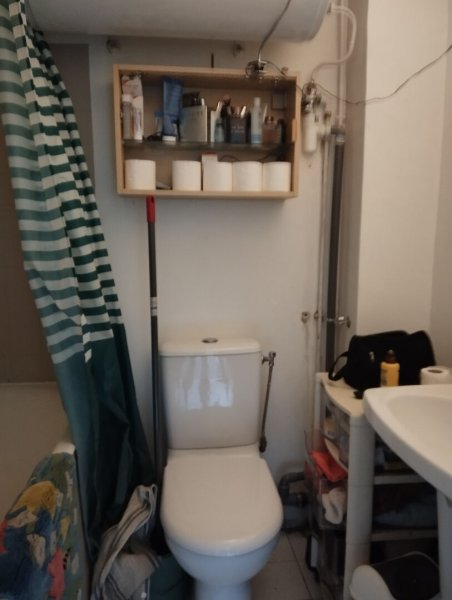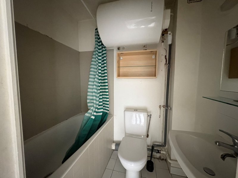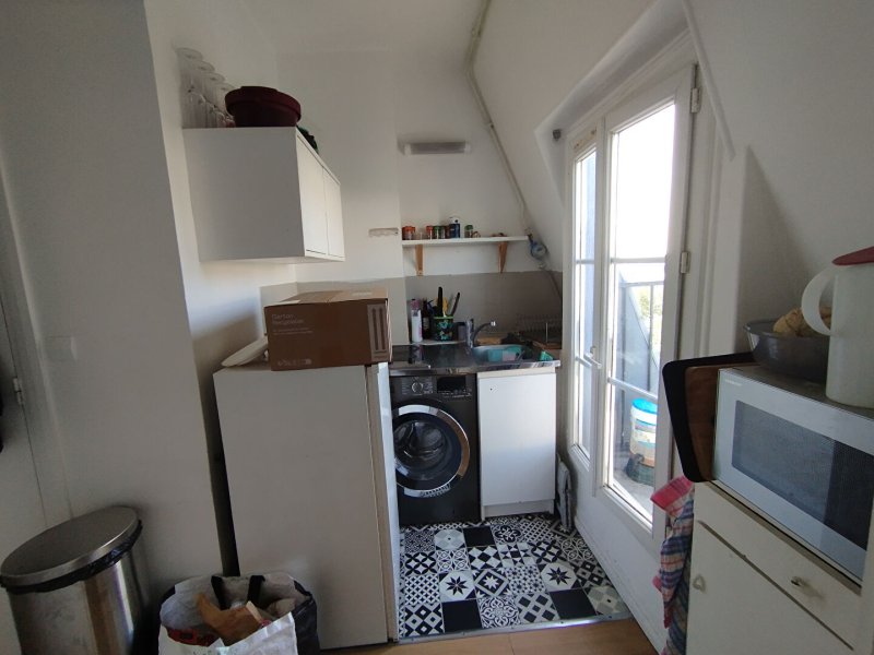 Au 6ème et dernier étage avec ascenseur d'un immeuble ancien, 2 pièces de 27 m² environ comprenant une entrée, séjour, coin cuisine, chambre, salle de bains avec WC.