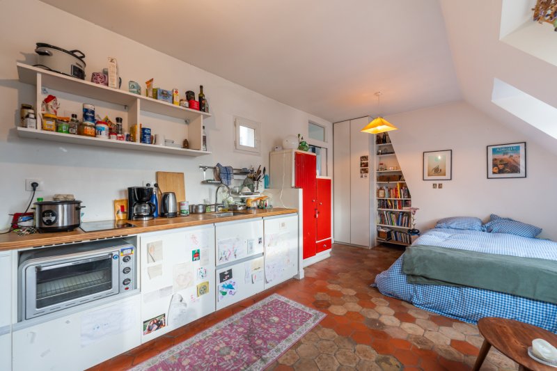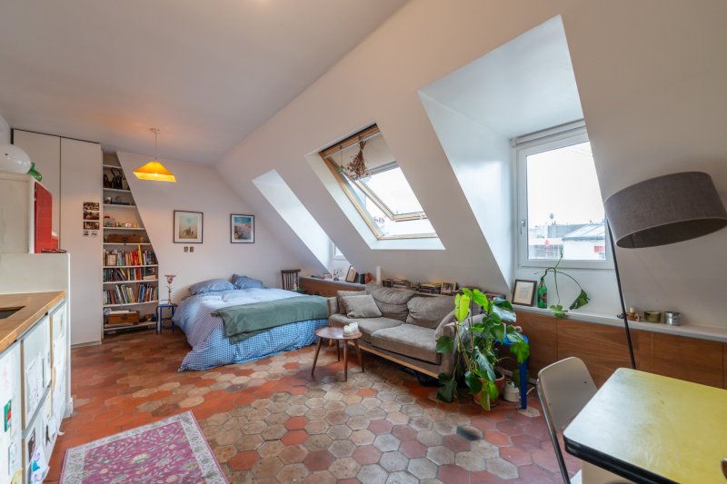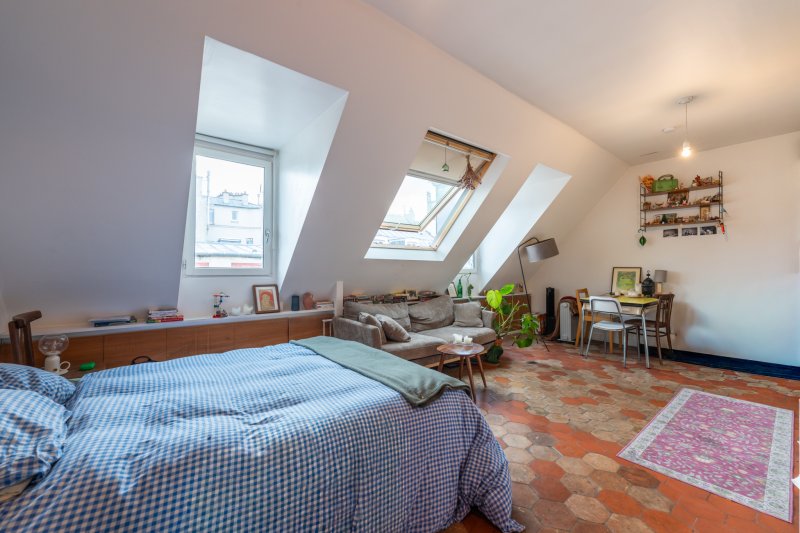 Populaire et en mutation, le micro-secteur situé entre Château Rouge et la rue Custine est apprécié de ceux qui aiment l'effervescence de ses rues. Non loin du marché de l'Olive, de la halle Pajol et du marché Barbès, les allées pittoresques du pied de la Butte composent un décor vivant et créatif. La rue Doudeauville, reliant les quartiers de Château Rouge et de La Chapelle fait partie de ses rues animées, jalonnée par des immeubles en pierre de taille. C'est le cas de celui où, au 6e et dernier étage, se niche un studio présenté par l'Agence [.VOUS.]. Exposé plein sud, il profite d'un ensoleillement continu et d'une atmosphère paisible, loin de l'agitation urbaine. Depuis ses fenêtres sous les toits, une vue dégagée laisse apercevoir le Sacré-Coeur. Entièrement rénové par un architecte d'intérieur, l'appartement a été pensé dans les moindres détails pour allier esthétisme et fonctionnalité. Il a gardé son charme, à l'image des tomettes qui recouvrent son sol. De la cuisine ouverte à la salle de douche avec WC, chaque espace trouve son sens : rangements discrets, lignes épurées, matériaux choisis avec soin. Aujourd'hui configuré en studio de 22,76 m2 carrez (30,54 m2 au sol), son plan rationnel permet d'envisager aisément une transformation en véritable deux-pièces, sans compromis sur le confort ni sur la lumière. Un lieu rare et inspirant, entre patrimoine haussmannien et modernité, idéal pour un premier achat, un pied-à-terre ou un investissement de charme. Pour toute information complémentaire ou demande de visite, nous vous invitons à contacter M. Massimo FAMULARO massimo.famularo@vous.immo 06 67 93 44 28. Copropriété de 29 lots. Quote-part annuelle de charges de copropriétés : 1 000 euros soit 83,33 euros par mois. Honoraires d'agence intégralement à la charge du vendeur.