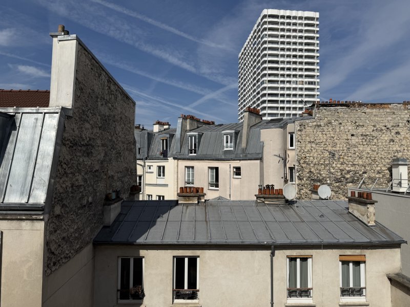 À 5 min du Mo Marx Dormoy Square de la Madone -rue des Roses Au 5e et dernier étage sans ascenseur d'un immeuble bien entretenu, appartement en parfait état avec vue dégagée. Optimisé sans aucune perte d'espace, il se compose d'un séjour lumineux avec cuisine ouverte, d'une chambre avec salle d'eau et WC. Double exposition offrant une belle luminosité tout au long de la journée - Dernier étage : calme et vue ouverte - Pas de travaux à prévoir Une cave en sous-sol complète ce bien. Immeuble soumis au statut de copropriété comprenant 40 lots principaux -Quote part charges prévisionnelles annuelles : 1145 euros
