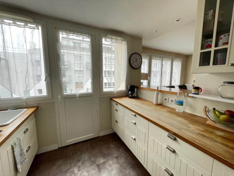 Quartier Vauvenargues / Belliard. A proximité des commerces de Guy Môquet et des métros Porte de Saint-Ouen et Guy Môquet. A 5 minutes du Marché Ordener. Dans un immeuble des années 50 très bien tenu avec gardienne. En étage élevé avec ascenseur, un appartement 3 pièces de 69,58 m2 carrez composé d'une entrée avec une grande penderie, un beau séjour de 21 m2, une cuisine ouverte donnant sur balcon, une chambre de 10,91 m2, un grand dressing, une seconde chambre de 12,87 m2 avec penderie intégrée, une jolie salle de bains avec douche et baignoire, un wc séparé. Appartement très lumineux et ensoleillé avec son exposition Ouest /Est. Bonne distribution des pièces sans perte de place. Nombreux rangements. L'immeuble dispose dun jardin partagé ainsi que d'un local vélo. Une cave complète ce bien.