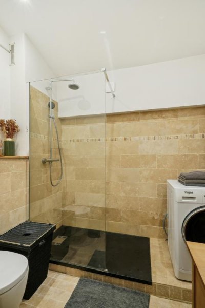 Ce bien s'ouvre sur une entrée fonctionnelle, qui mène à un séjour chaleureux avec cuisine ouverte, où les poutres apparentes et le parquet apportent caractère et charme à l'espace.