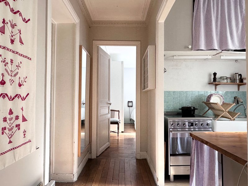 Cet appartement séduit par son charme ancien (parquet, moulures), sa modularité (2 chambres ou double séjour) son emplacement dans le quartier et sa vue ciel.