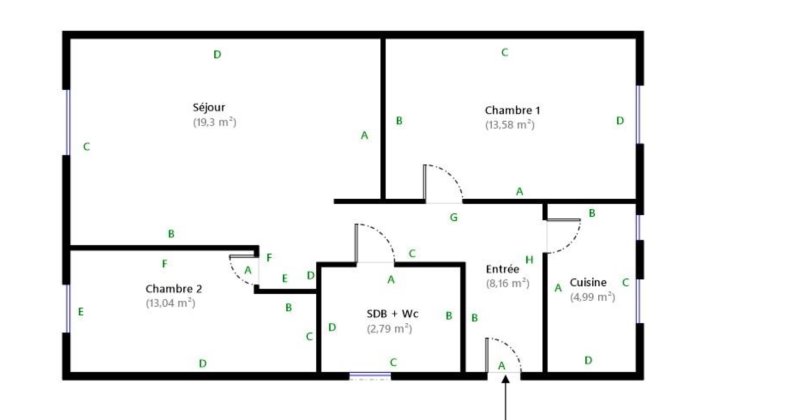 Il se compose d'une entrée desservant une cuisine indépendante, un beau séjour exposé plein sud, deux grandes chambres de 13 m², ainsi qu'une salle de bains avec WC. Cave et emplacement vélos dans la cour de l'immeuble