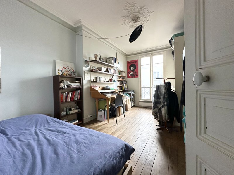 3 chambres, parquet ancien, moulures d'époque et cheminée.