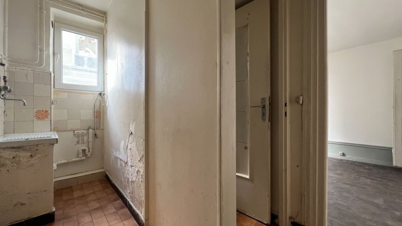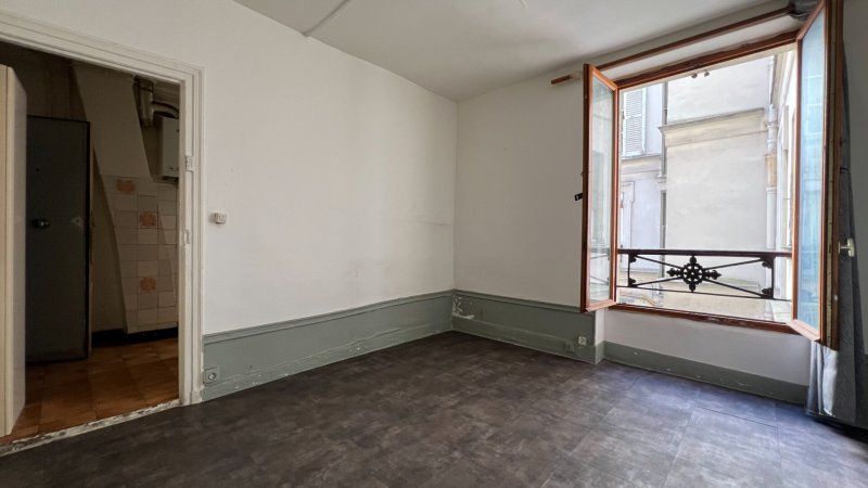 Charmant studio, à rénover intégralement, situé rue de la Villette, au coeur du quarter Jourdain, au premier étage d'un immeuble ancien bien tenu.