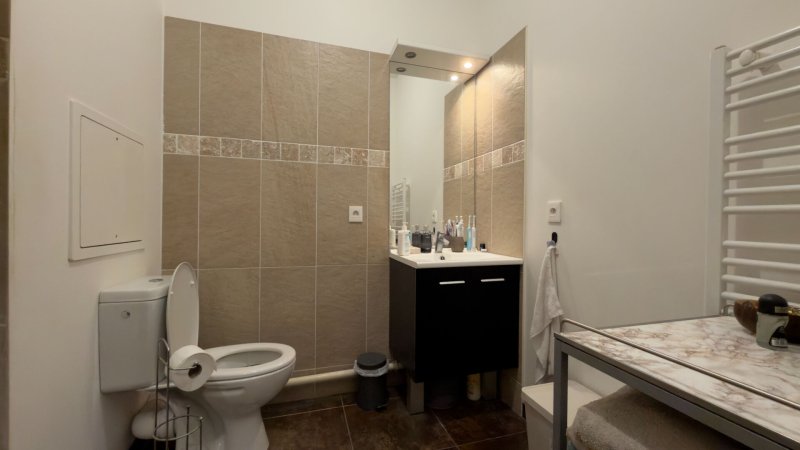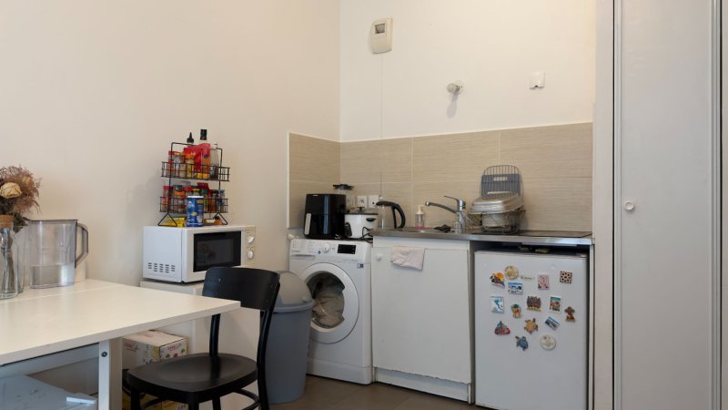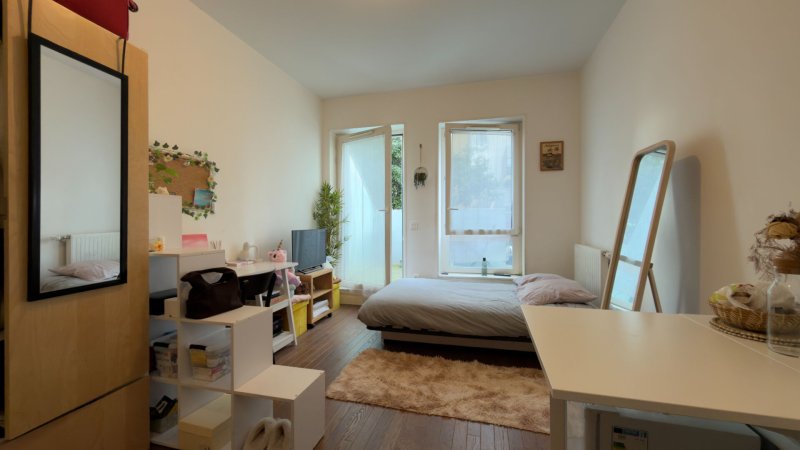 Appartement calme et lumineux composé d'une entrée donnant sur une salle d'eau avec WC de 4m2, coin cuisine (kitchenette) donnant sur un bel espace de vie de 17m2, me tout donnant sur un espace extérieur de 14 m2 avec terrasse et jardinière privative.