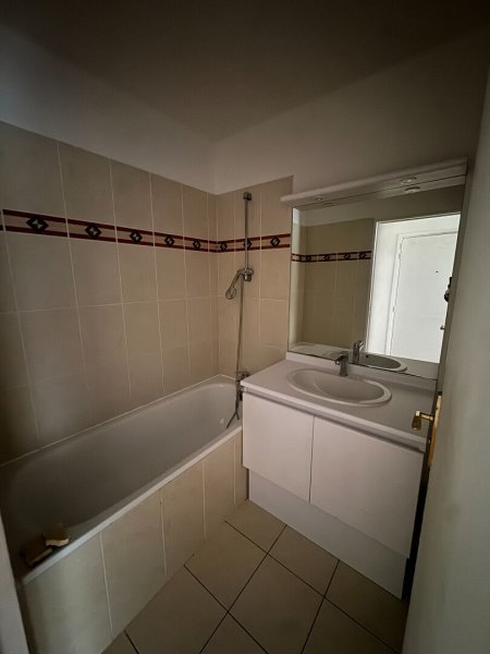 Entrée, placard, salle de bains, WC, séjour avec coin kitchenette, porte fenêtre PVC double vitrage sur jardin.