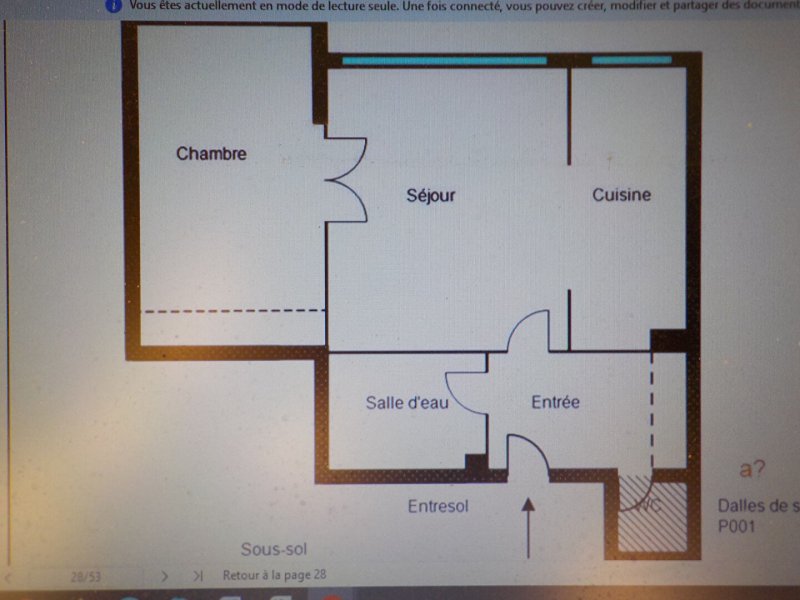 Entrée avec placard de rangement, salle d'eau, WC, séjour de 15.85m², cuisine indépendante de 8.14m² (possible US sur séjour) et chambre de 13.64m² avec dressing.