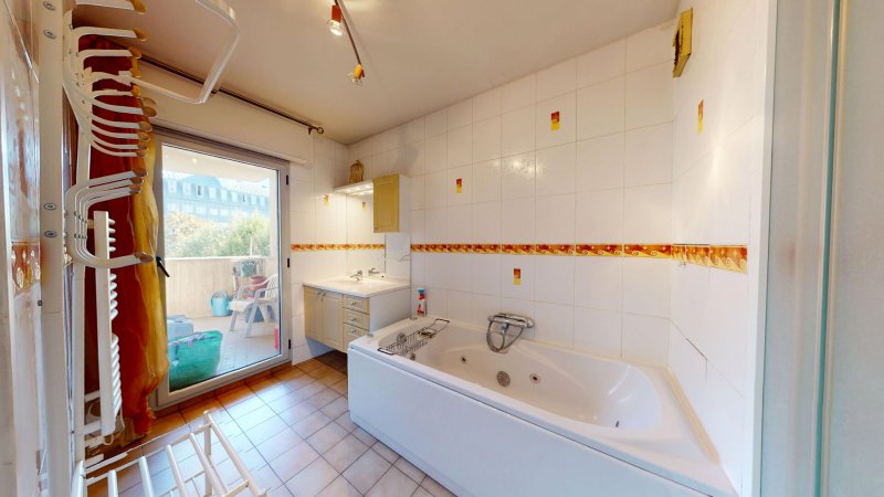 Entrée sur séjour donnant accès par une baie vitrée à un grand Balcon en forme de "L" de 10m2, exposé EST au calme sur jardin. Appartement très ensoleillé.