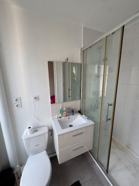 Entrée sur beau séjour avec cuisine ouverte de 19.45m² disposant de deux fenêtres PVC double vitrage (exposition EST), chambre attenante au séjour de 8.60m² donnant accès à un dressing de 1.50m² et à la salle d'eau avec WC.