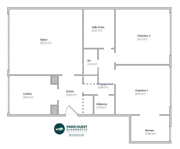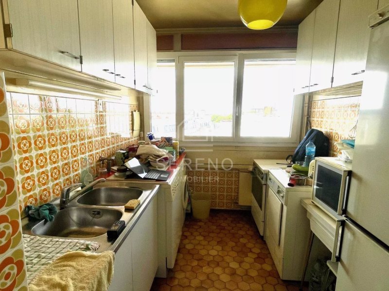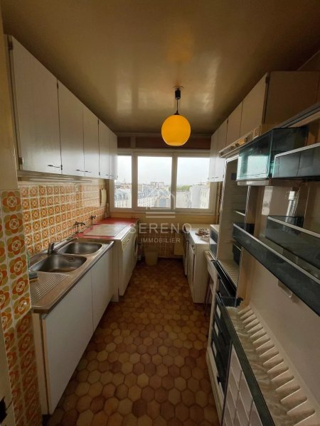 SERENO vous propose : A Paris 19è, Quai de la Loire, proche Jaurès, dans un immeuble année 1970, bien entretenu, 9è étage, clair, traversant, vues imprenables sur Paris, Montmartre, Tour Eiffel, trois pièces à rénover, comportant entrée avec placards, dressing et dégagement,cuisine aménagée équipée à rénover, séjour, une chambre, avec accès salle d’eau, et toilettes séparées, cuvette neuve, une chambre avec alcôve annexe,une cave et un emplacement de parking, voiture moyenne, hauteur 1,90 m, des jardins collectifs complètent ce bien.