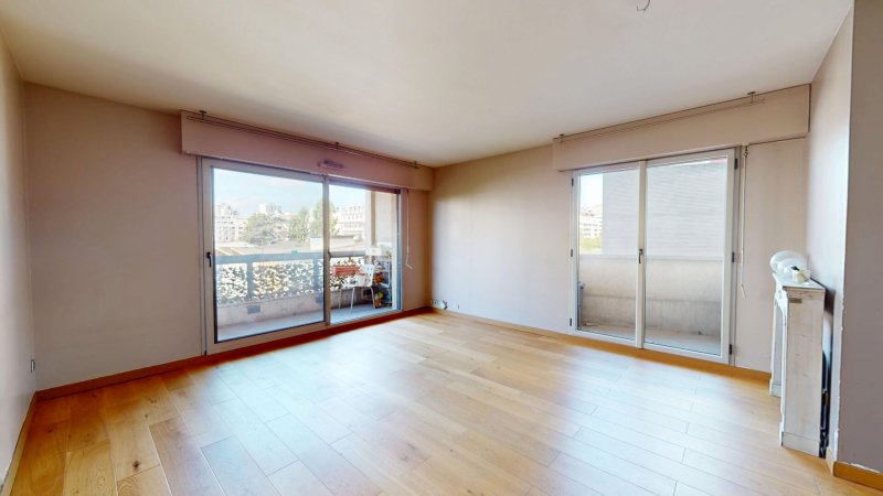 Cuisine entièrement carrelée équipée et aménagée. Cette dernière est ouvrable sur le séjour, offrant un beau volume de 40 m², prolongé par deux grands portes fenêtres donnant accès au balcon rectangulaire et facilement logeable de 8m² exposé plein Ouest et à l'autre balcon d'environ 2/3m².