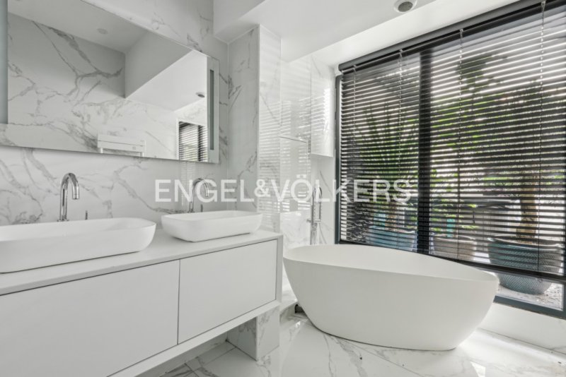 L'appartement s'articule entièrement autour de la terrasse et est doté de la climatisation réversible, de stores en bois motorisés avec la possibilité d'effectuer les réglages à distance.