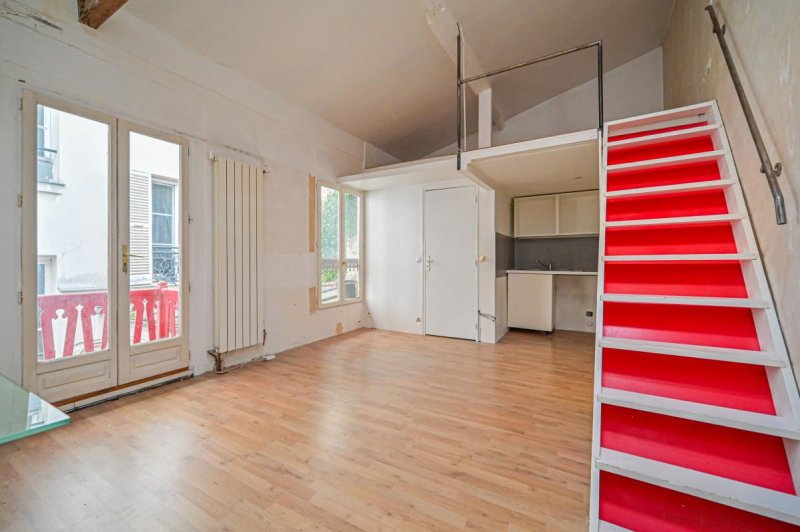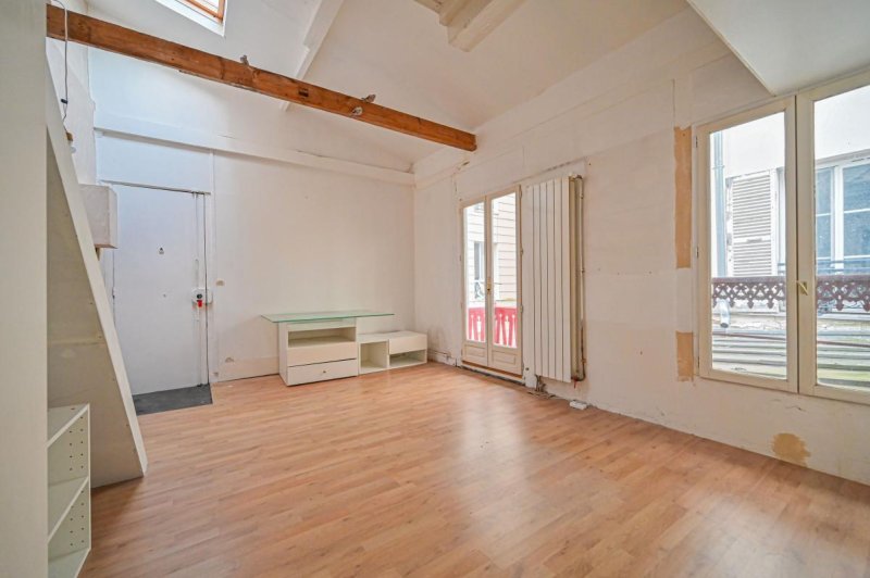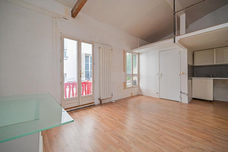 Situé dans un charmant fond de cour, cet appartement de type loft, d'une superficie de 33 m² au sol (22,45 m² en Loi Carrez), offre une hauteur sous plafond de 4 mètres, apportant une belle luminosité et une atmosphère unique, proche de celle d'une maison.