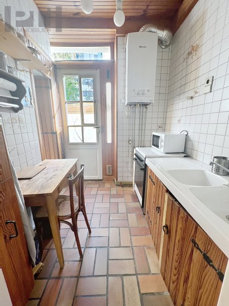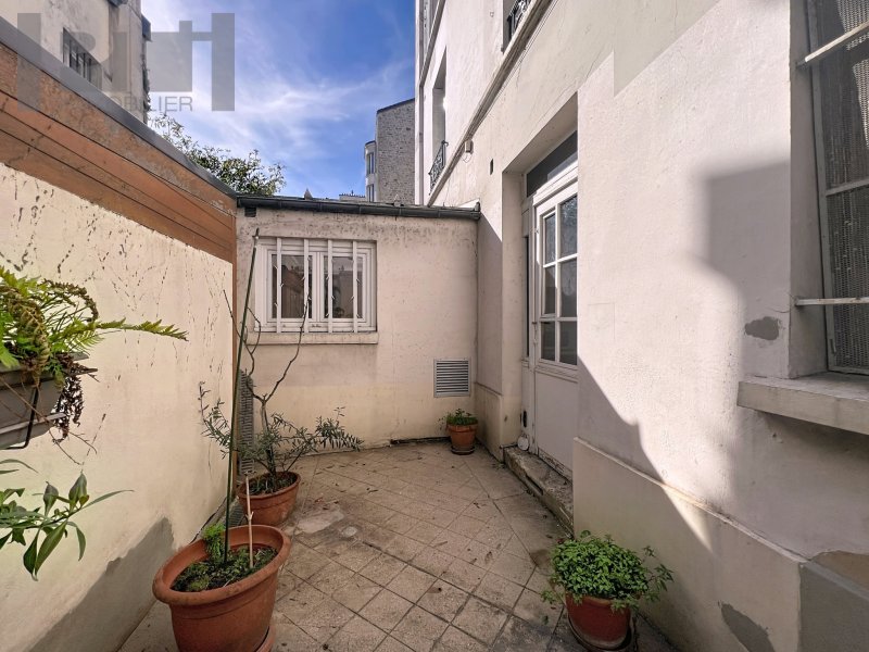 Dans immeuble Pierre de Paris, au rez-de-chaussée, appartement de 57,80 m2 loi Carrez + 6,60 m2 de courette privative comprenant: entrée, double séjour 24 m2 dont une pièce sous verrière, cuisine avec porte-fenêtre sur courette, deux chambres (11,50 m2 et 11 m2 ), salle d'eau et WC séparé. Chaudière individuelle gaz récente et double vitrage. Travaux à prévoir Une cave en sous-sol Exclusivité Paris Tocqueville Immobilier