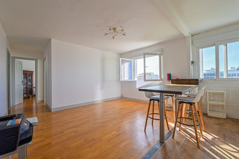 En bon état général, il se compose d'une entrée, d'un séjour de 21 m² avec cuisine ouverte exposé Sud-Ouest, une grande chambre de 12 m² avec dressing attenant, deux chambres d'enfant (ou bureau/dressing) dont une sur cour et sur la rue Pierre Bayle qui est très calme, une salle de douche ainsi qu'un WC séparé à l'entrée.