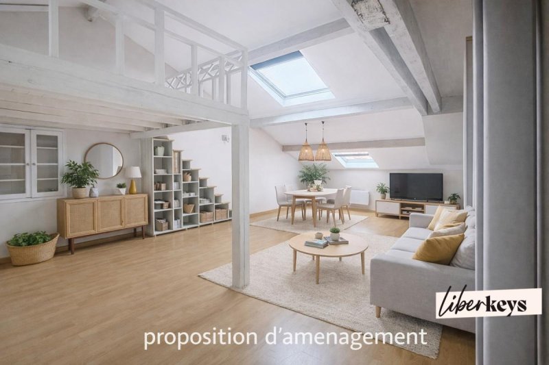 Un séjour, salle à manger lumineux et sa mezzanine propice aux moments de détente