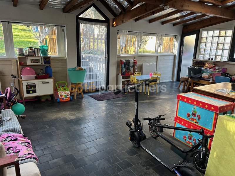 Grand jardin privatif cloturé, petite terrasse avec barbecue.