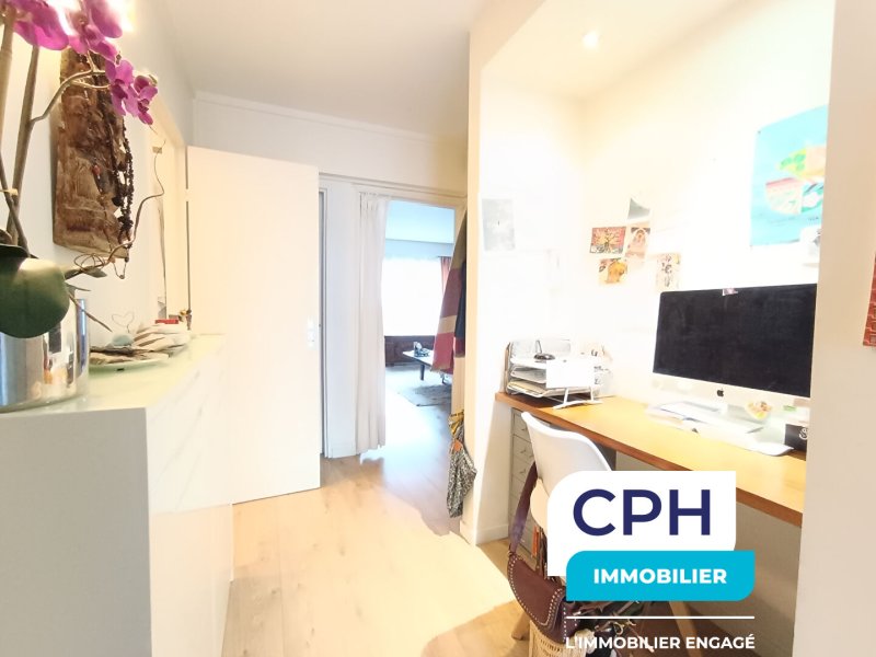 Cet appartement traversant et lumineux propose un agencement optimisé comprenant: une entrée avec un coin bureau et un dressing, un séjour en L orienté SUD-OUEST, une cuisine séparée aménagée, un WC séparé, une salle d'eau, deux chambres, et une cave en sous-sol.