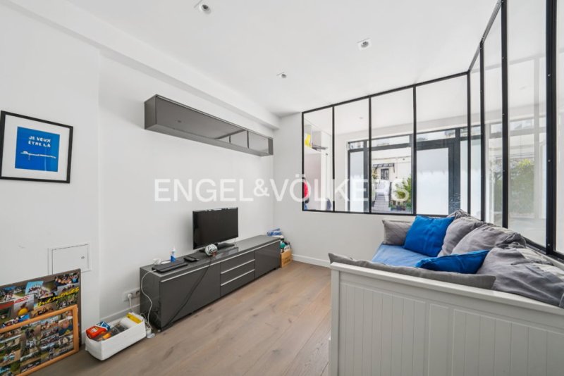 Situé dans une maison de ville, au sein d' une charmante impasse privée entièrement sécurisée, ce duplex style loft offre un cadre de vie privilégié, à proximité immédiate des commerces, écoles et transports du nord de Boulogne.