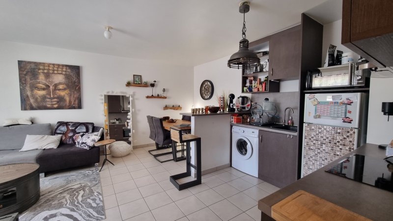 BRUNOY- SECTEUR GAMBETTA : proche gare et commodités, dans résidence BBC de 2012 - F2 VENDU LOUE de 47,50 m2 comprenant : entrée, belle pièce de vie de 23m2 avec cuisine équipée, balcon sans vis-à-vis, chambre, wc, sdb, rangements. Parking sous-sol. Cave. Chauffage individuel gaz. Actuellement loué 938,86EUR charges comprises (848.86EUR + 90EUR de provision pour charges). DPE : B (99) et GES : C (17).
