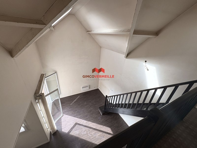 Il comprend au premier niveau une entrée, un séjour cathédrale de 25m² donnant sur un balcon orienté plein Sud, une cuisine semi aménagée, une belle chambre de 13m² dotée d'un espace de rangement, une salle de bains et un wc séparé.