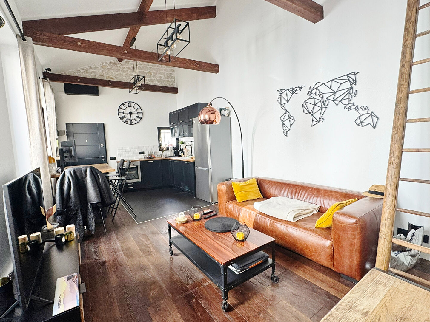 - Une pièce de vie avec cuisine ouverte et accès terrasse