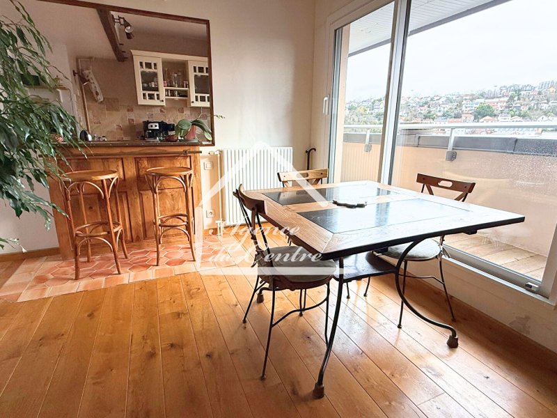 Le séjour donne accès à un balcon offrant une vue dégagée sur le quartier pavillonnaire du coteau.
