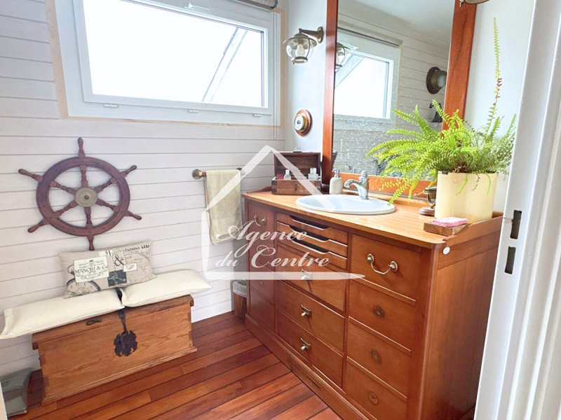 Un dégagement dessert deux chambres, dont une avec dressing, ainsi qu'une salle de bains avec fenêtre, en parfait état, sublimée par un parquet ?pont de bateau'.