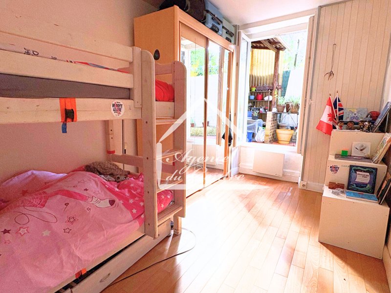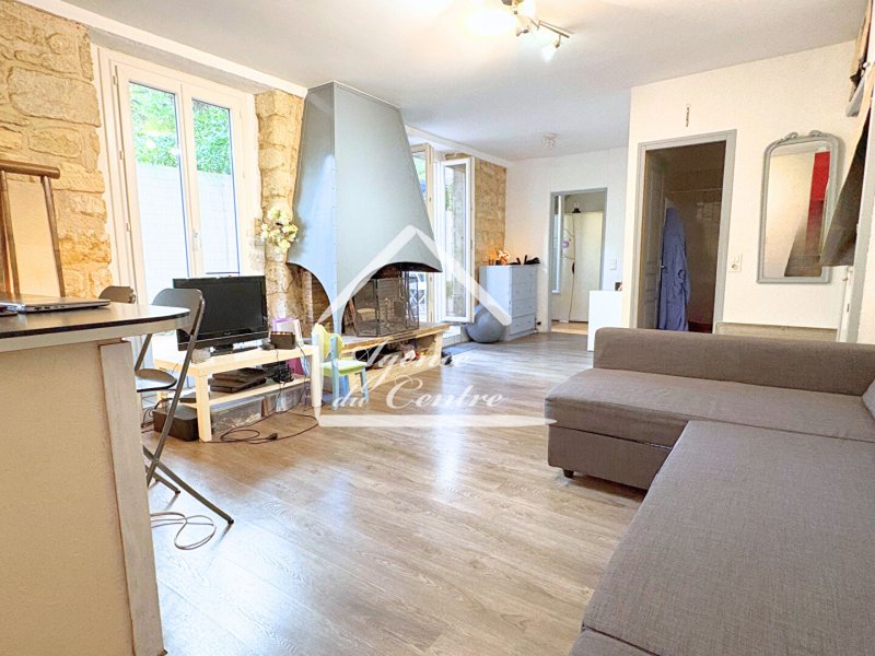 Situé en rez-de-chaussée sur cour, cet appartement se compose d'un séjour chaleureux avec cheminée et cuisine ouverte, aménagée et équipée, offrant un espace de vie convivial. Toutes les pièces donnent sur une terrasse extérieur intimiste.