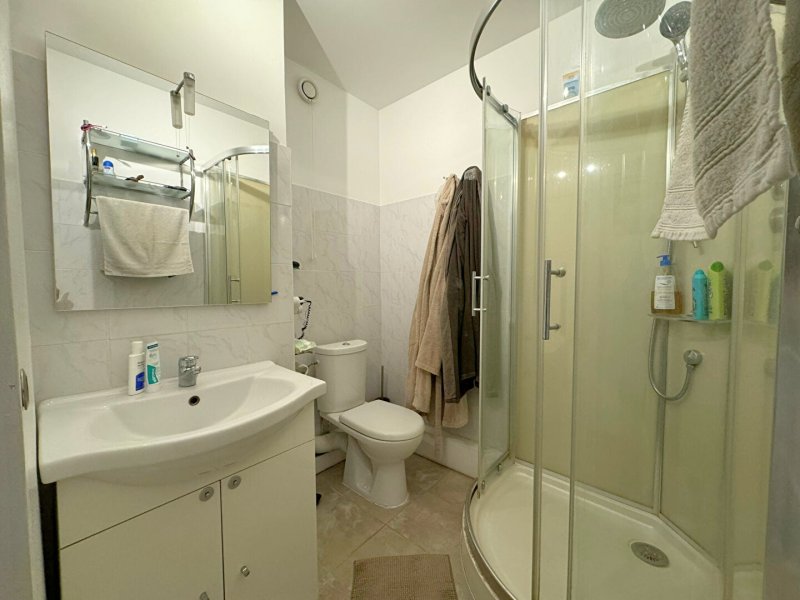 La cuisine moderne est aménagée et équipée, avec des finitions contemporaines. La salle de bains est élégante, avec des matériaux de qualité. Toilettes séparées.