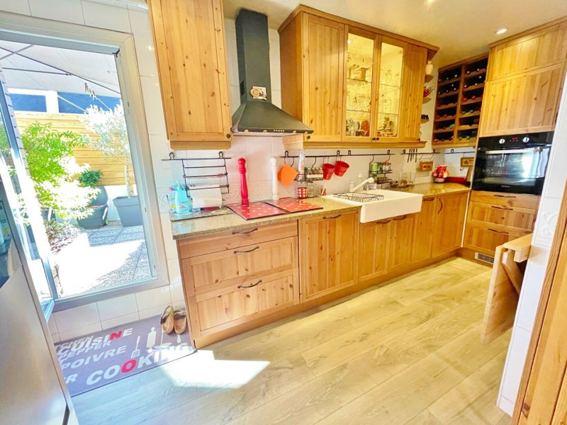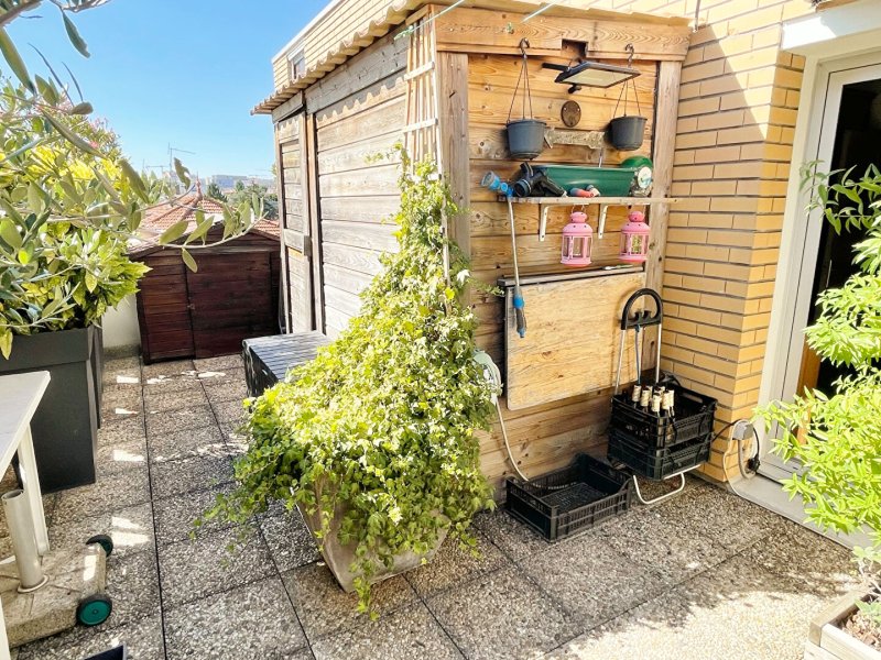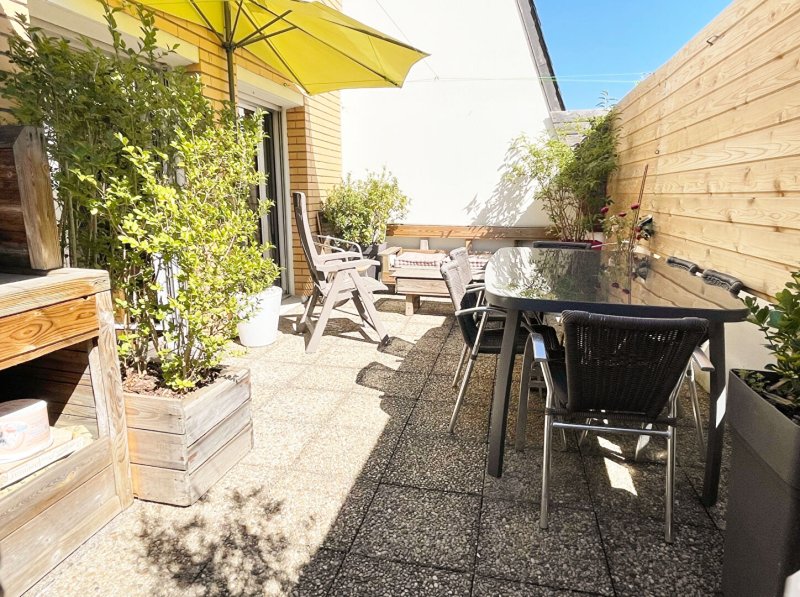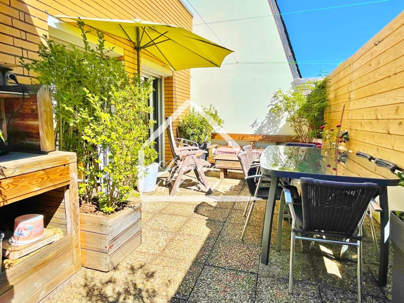 Il se compose d'une entrée avec placard, d'une cuisine dinatoire aménagée et entièrement équipée, dotée d'un store roulant, ainsi que d'un séjour lumineux exposé plein sud ouvrant sur une terrasse aménagée sans vis-à-vis.