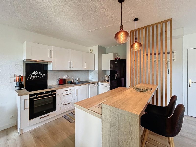 Il se compose d'une entrée, d'une cuisine entièrement équipée ouverte sur le séjour et donnant sur une belle terrasse de 16m2, sans vis à vis, offrant une magnifique vue sur la nature. Le coin nuit se compose d'un grand couloir avec placard de rangement, de 2 chambres avec placards (dont une donnant également sur la terrasse), d'une salle d'eau et de wc séparés.