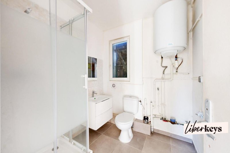 L'espace de vie de 17 m², baigné de lumière naturelle, communique avec la cuisine ouverte. Le bien comprend deux chambres de 9 m² chacune, ainsi qu'une salle de douche, toilette pour un espace optimisé.
