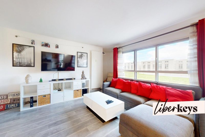 Exclusivité Liberkeys pour ce bel appartement très lumineux, au calme, situé au RDC/5 étages avec ascenseur. Il se compose d'une entrée donnant sur un double séjour avec sa cuisine ouverte aménagée & équipée, un couloir avec un grand placard qui dessert 2 chambres avec placard, une salle de bains, un WC séparé. Une place de parking en sous-sol complète ce bien.