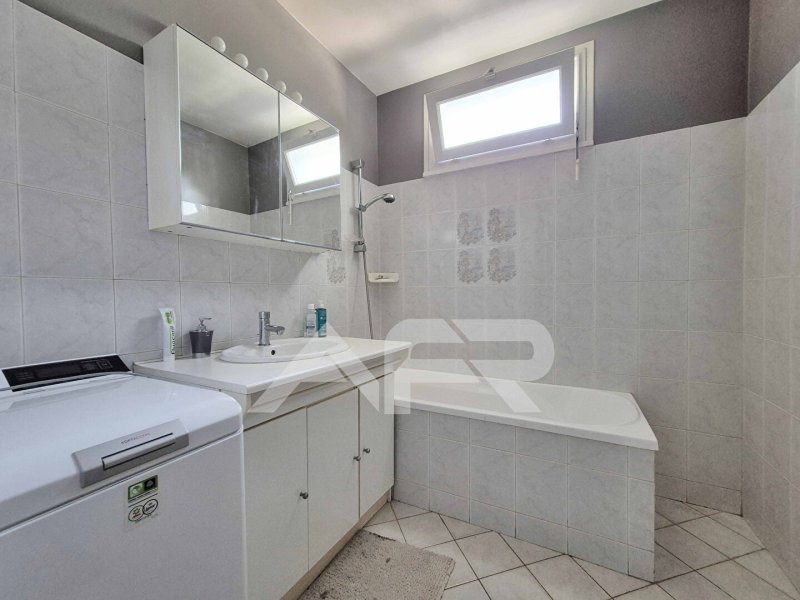 Il se compose d'une entrée avec placard, d'un séjour avec une baie vitrée orientée à l'Ouest, d'une cuisine aménagée et équipée, d'un cellier, d'une salle de bains avec coin buanderie, et de WC séparés.