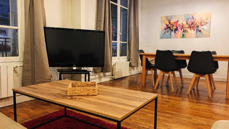 CHAVILLE Quartier 'Verdun' Proximité gares, commerces, écoles. Petite copropriété bien entretenue Appartement 3 pièces au 1er étage. Entrée, séjour double, cuisine équipée, 2 chambres, salle d'eau avec wc, 2 caves. Chauffage et eau compris dans les charges.