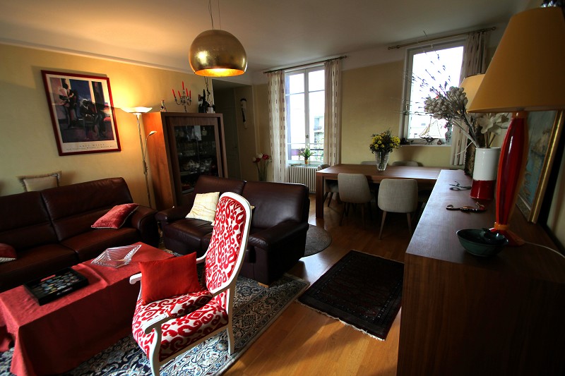 Au sein d'un ancien h?tel particulier. Charme d'un immeuble historique, r?sidence calme, tranquille et bien fr?quent?e. Beaux volumes pour cet appartement en tr?s bon ?tat g?n?ral, compos? d'un grand s?jour, de deux chambres, d'une cuisine ?quip?e, d'une salle de bains, wc s?par?s. Un GARAGE, une cave et un compartiment ? usage de s?choir compl?tent le bien. Proche des commodit?s (?coles, centre ville & bus).