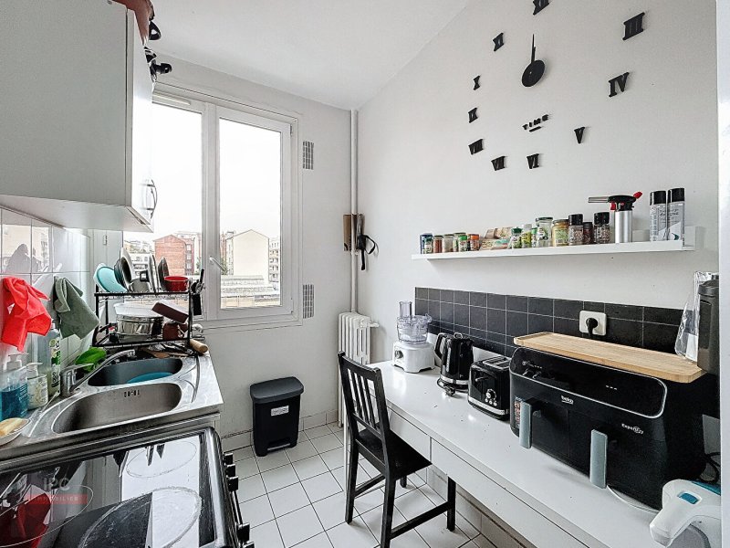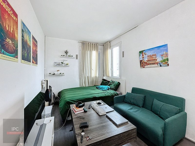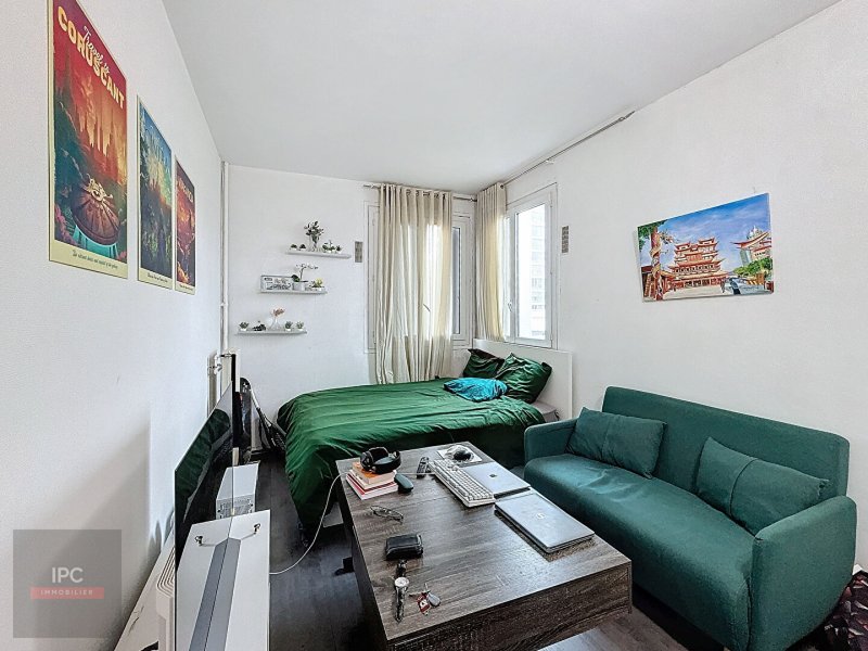 A 2min du métro mairie de Clichy dans un immeuble, un studio comprenant: entrée avec placards, pièce principale, cuisine, coin douche, WC séparés.