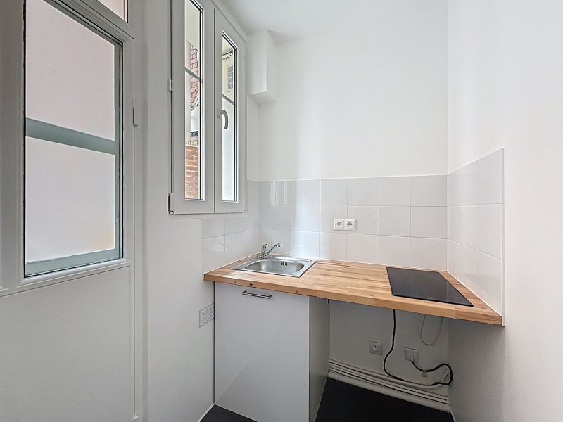 Dans la cour d'un bel immeuble Briques, au RDC, nous vous proposons ce studio REFAIT A NEUF comprenant: pièce principale, cuisine, salle d'eau avec WC.