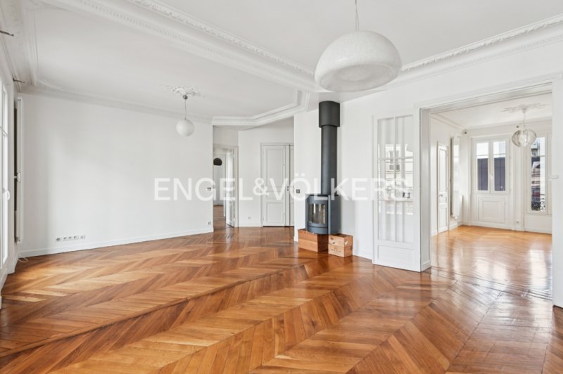 Ce bien plein de charme (moulures, parquet, cheminées) laisse apparaître de beaux volumes et offre une belle luminosité tout au long de la journée grâce à sa double exposition.