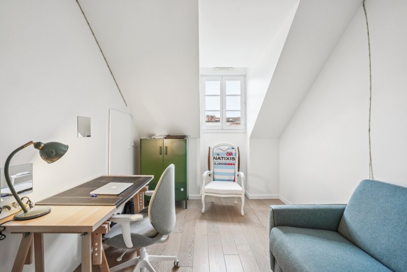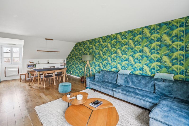 La rénovation intégrale de 2021 met en valeur un parquet chêne massif posé sur isolant et des menuiseries PVC à double vitrage, pour un confort immédiat.