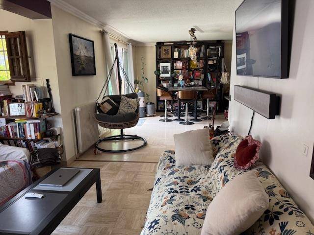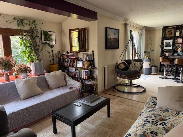 EXCLUSIVITE - MASSY-VERRIERES/COULEE VERTE - Dans un environnement de qualité, au premier et dernier étage, appartement atypique traversant en duplex de 4/5 pièces principales repésentant 87,01 m² loi Carrrez et 128,72 m² au sol, avec jardin de 53 m², loggia et balcon. Garage en sous-sol et cave. Calme, à 8 minutes du RER B.